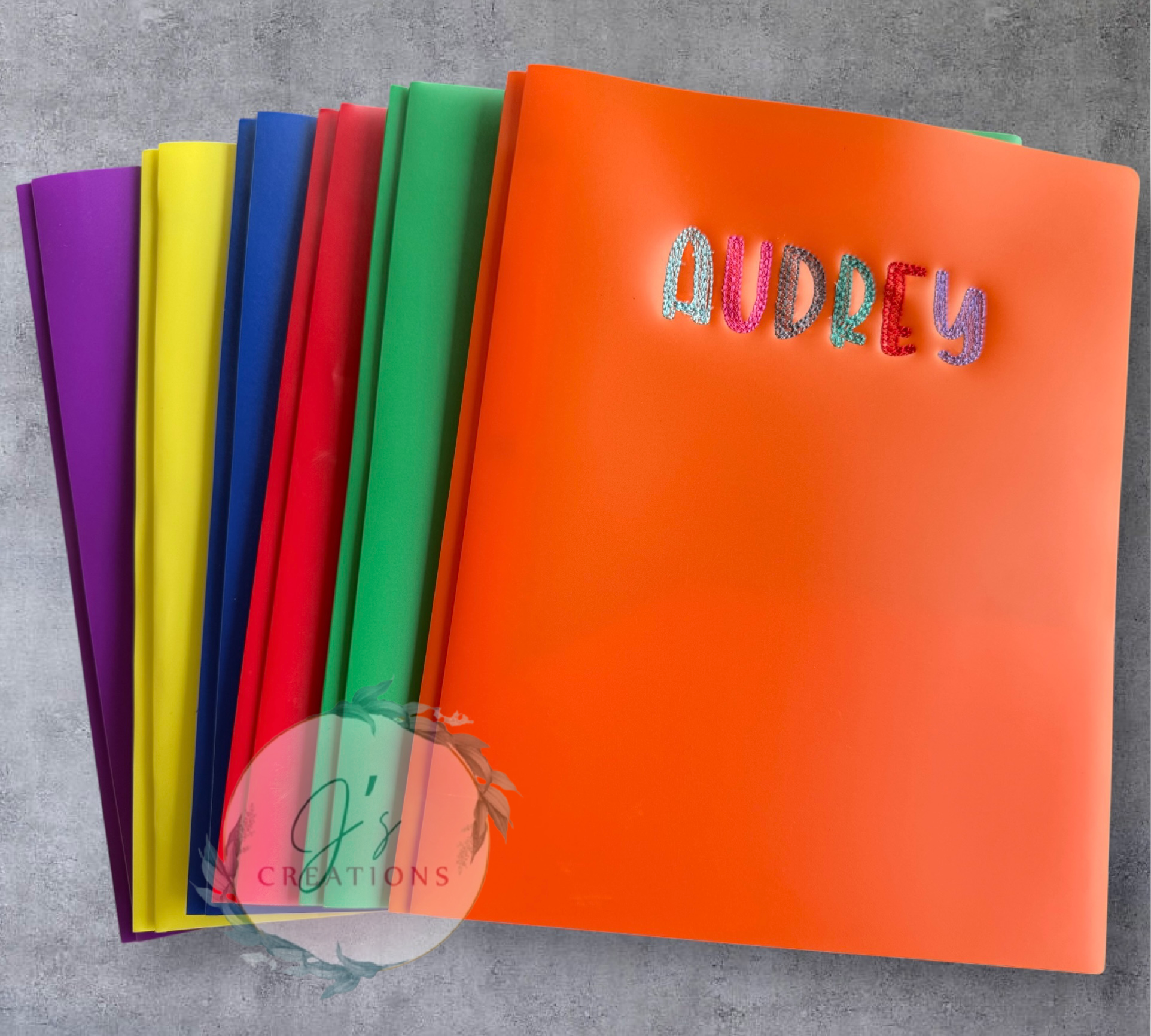 Our personalized embroidered pocket folder with brads is perfect for school kids. With its beautiful embroidery and sturdy brads, it adds a touch of customization. A must-have for any student, making it a practical and stylish choice.